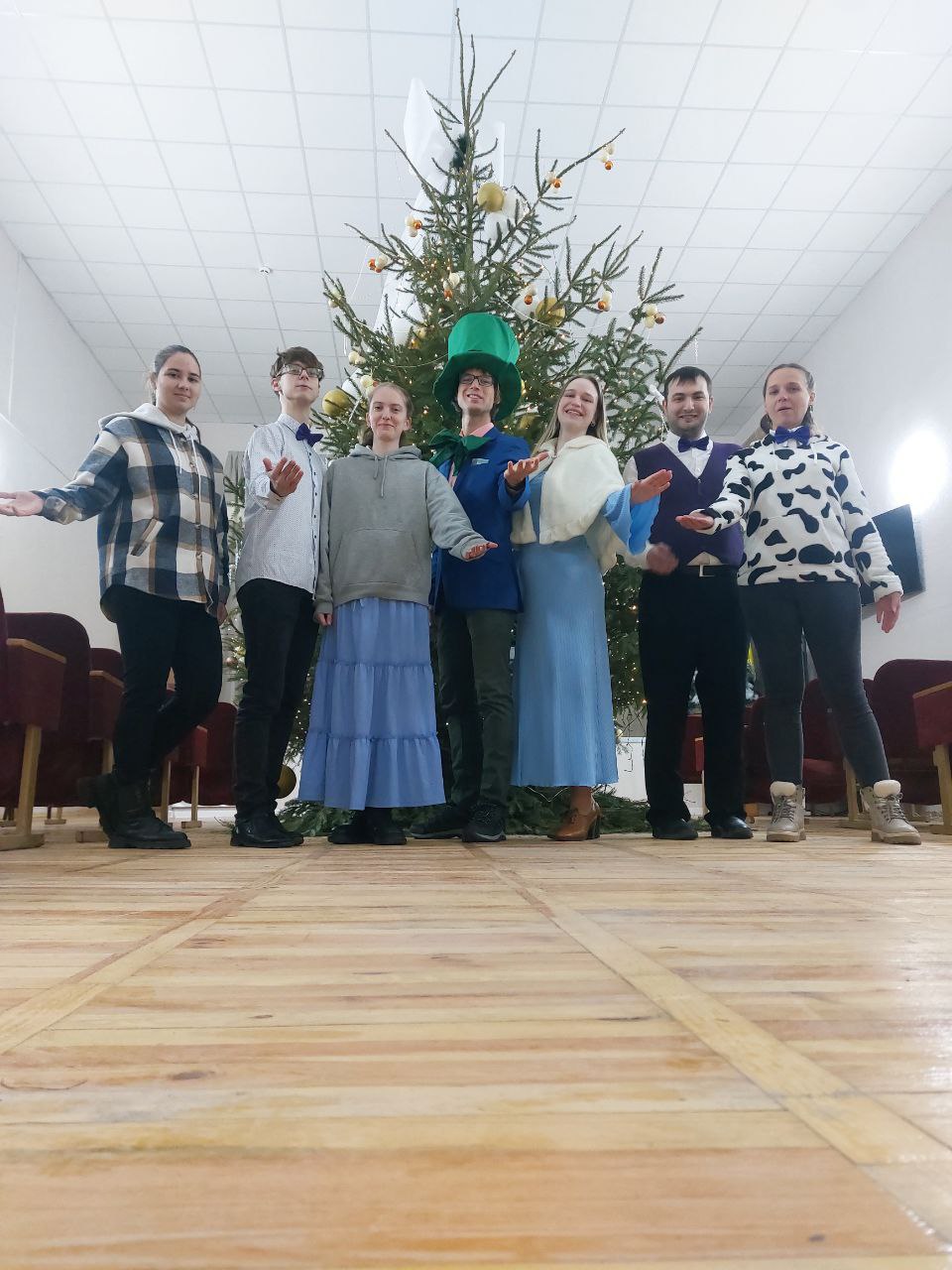 Праздник начался в фойе театра с интерактивной программы. Волонтеры Братства и педагоги создали атмосферу игры и творчества, где каждый ребенок мог почувствовать себя частью рождественской сказки.